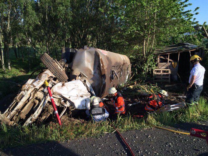 El hecho involucrò a un camion recolector de leche, el que transitaba por la ruta T-85 a la altura del sector de Cachillahue, cuando por causas que se investigan volcò a un costado de la ruta, quedando la estructura totalmente destruida, causando a su conductor con serias lesiones.